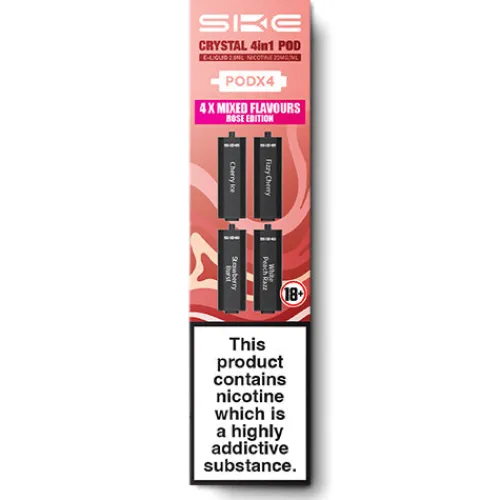 SKE Crystal 2400 Rose Edition pods for use with the Crystal 2400 pod kit. Filled with 4 x delicious red fruit & berry blends.
